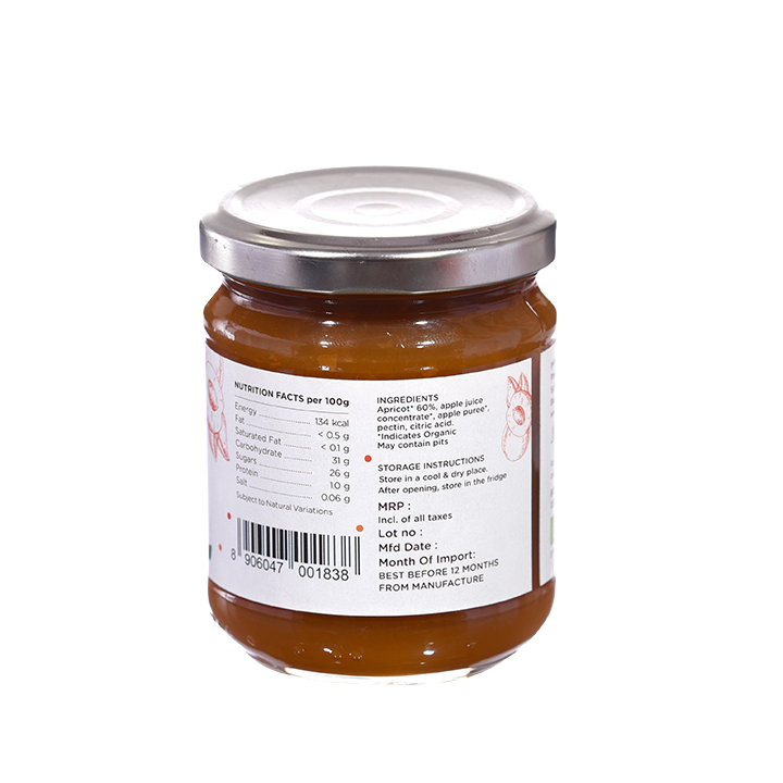 NUTRITION ON THE GO: Our apricot jam is rich in sodium, and has very little cholesterol so it's great when you're on a diet. It contains vital nutrients, including dietary fiber, vitamin C, folate (folic acid), and potassium. Natural fruit jam is one of the healthiest organic bread spreads for weight watchers and fitness enthusiasts.
