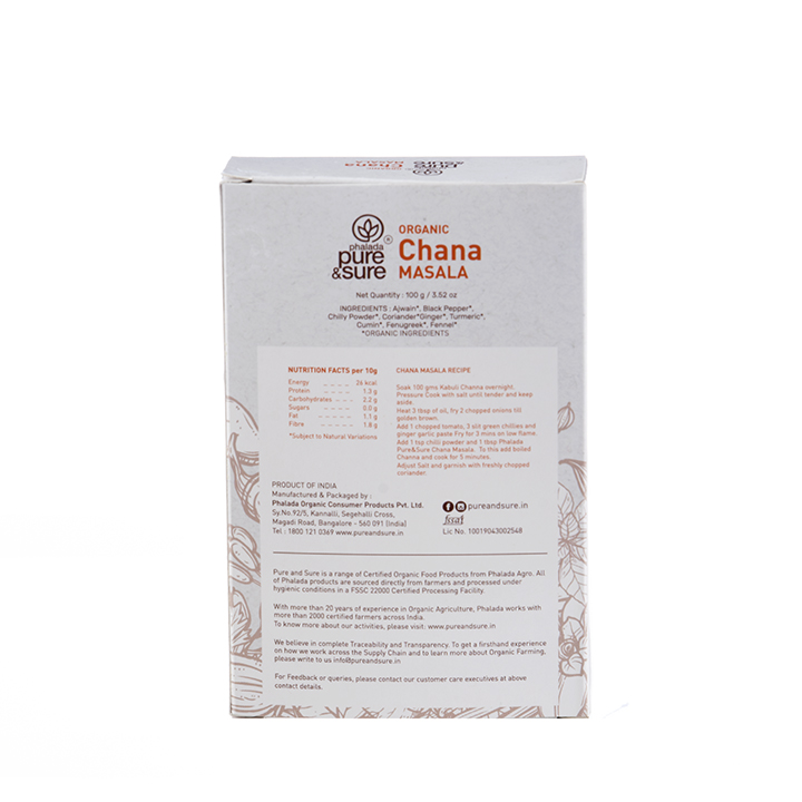 Elevate your Chana Masalas and give it a flavoursome boost with our Organic Chana Masala Powder. A small measure of this blend is all you need to cook out a delicious recipe that’s the right mix of all ingredients. What’s more, you can make it with our range of Organic Chanas to increase the taste quotient and health quotient.