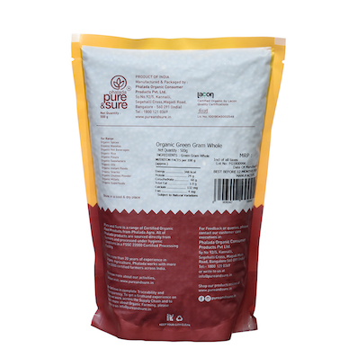 Our organic whole green gram is a rich source of iron and is perfect to meet your daily nutritional needs. A versatile and popular ingredient in the kitchen, it doubles as a vital source of protein when sprouted and consumed raw in salads. We take pride in hand picking our organic produce for 100% assured quality.