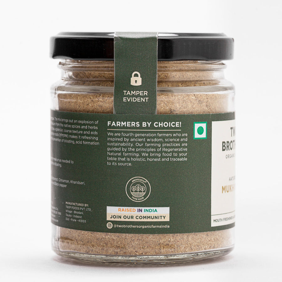 A Mouth Freshener & After-meal Digestive made of native and natural ingredients. The mix brings out an explosion of sweet-pungent flavours from the native spices and herbs used to make it. It has a granular, coarse texture and aids digestion. The licorice roots (?????????) makes it refreshing and effective in the prevention of bloating, acid formation or indigestion.