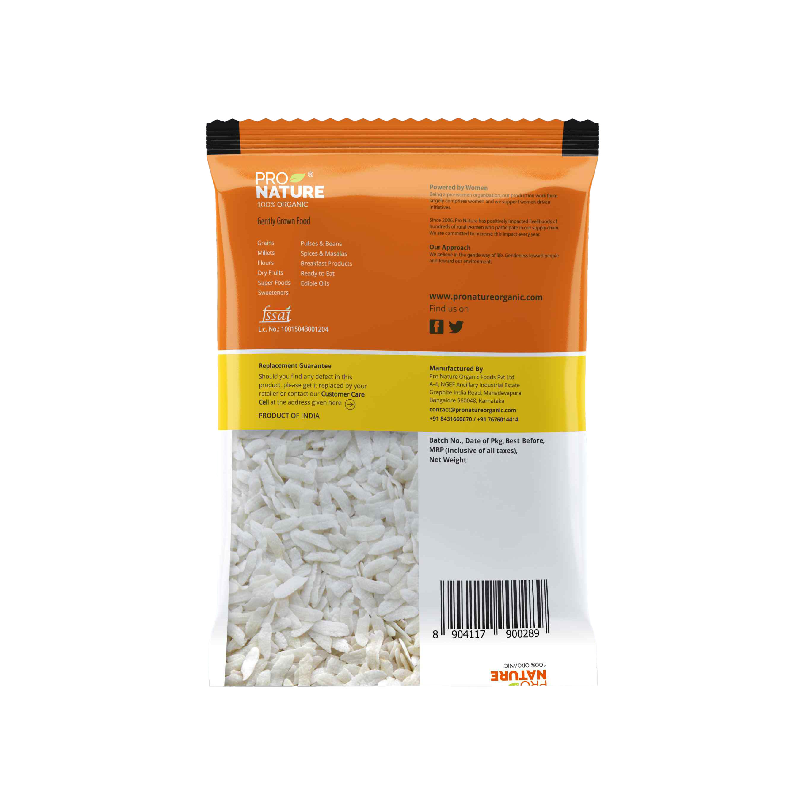 Pro Nature 100% Certified Organic Beaten rice (Poha) is made from the finest quality rice grains sourced from Certified Organic farms and grown without the use of any chemicals, pesticides or insecticides. It is naturally gluten free and makes for a healthy, light & tasty breakfast snack. It has relatively higher nutritional content than white rice due to the presence of the aleurone layer. Pro Nature Organic Beaten Rice or Poha has no cholestrol and trans fat making it consumable by all age groups.