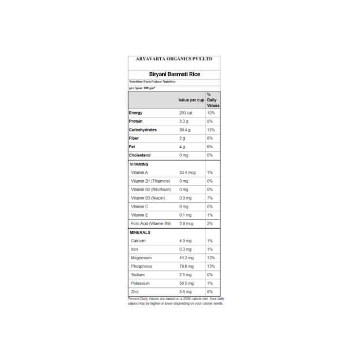 Induz Organic Biryani Basmati Rice - 1 KG is absolutely Natural, Non GMO, and Certified Organic Rice. This Induz Organic Biryani Basmati Rice - 1 KG has been cultivated without using any harmful chemicals, pesticides or insecticides in certified Organic Farmlands. This Organic Rice has gone through less processing; so it contains all the nutrients inside.Benefits : Induz Organic Basmati Biryani Rice 1 KG is rich in Carbohydrates; so it provides healthy energy & daily calorie requirement. Induz Organic Biryani Basmati Rice is source of some excellent vitamins & minerals. This rice has the delight of Organic Basmati Rice & Organic Brown rice together. Organic Biryani Rice adds one magical aroma to the food. Organic Brown Rice is whole grain highly nutritious rice with lots of healthy fiber, B Vitamins & Folic Acid.