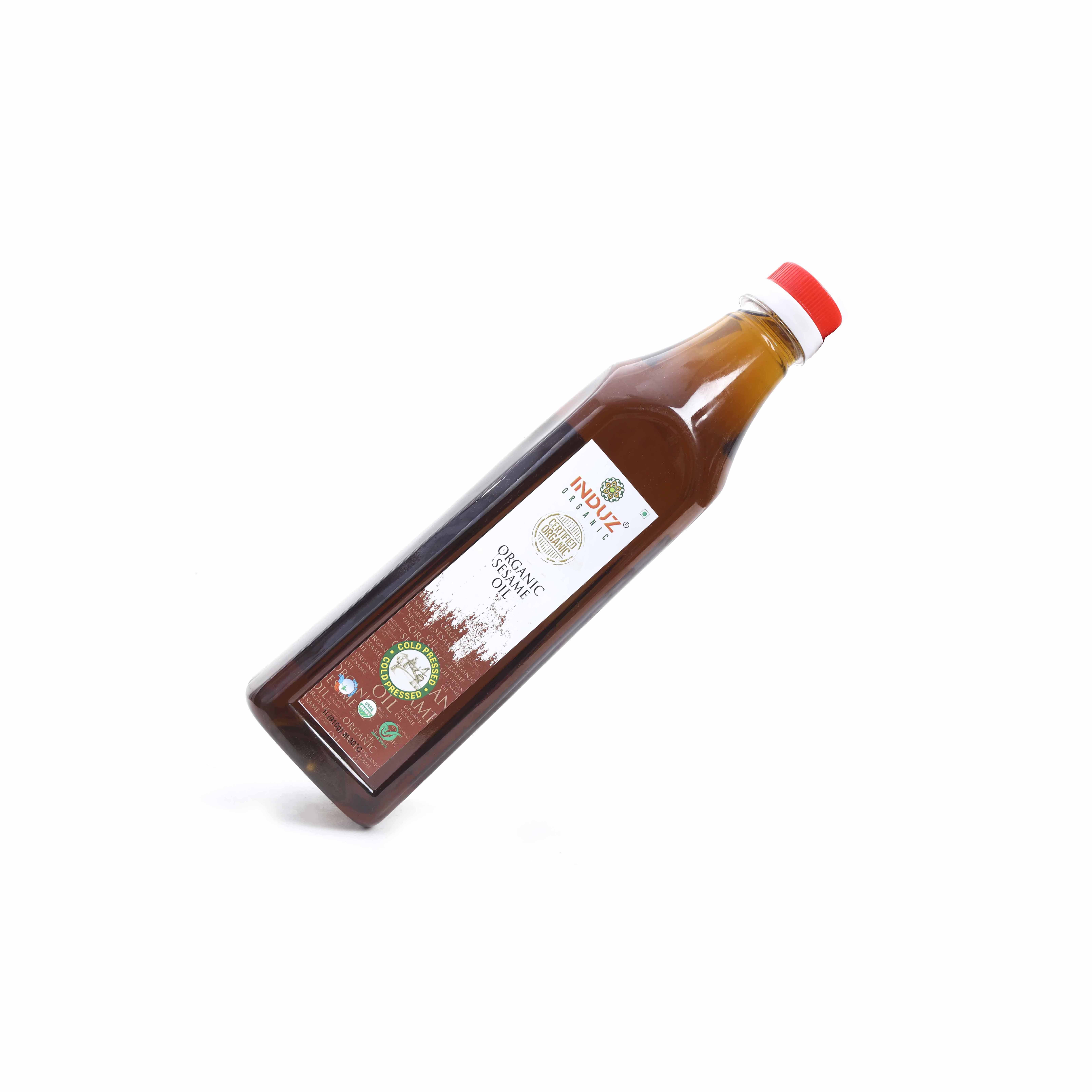 Induz Organic Black Sesame Oil - 1 Ltr. is Natural & absolutely pure Black Sesame Oil prepared by grinding Sesame Seeds. This Natural Black Sesame Oil is non-sticky & fast absorbing to the skin. Induz Organic Black Sesame Oil - 1 Ltr. is cold pressed oil; so this Black Sesame Oil has all the therapeutic utilities locked inside. This oil is free from any types of artificial color or chemical.Benefits : Antioxidants in Induz Organic Black Sesame Oil - 1 Ltr.reduce cell damage caused by free radicals. This Natural Black Sesame Oil is renowned for its anti-inflammatory properties. Induz Organic Black Sesame Oil - 1 Ltr. is one of the best oils for baby massage for its anti-bacterial, anti-inflammatory and antioxidant properties. This Oil makes the baby skin soft & supple and keeps the baby calm.