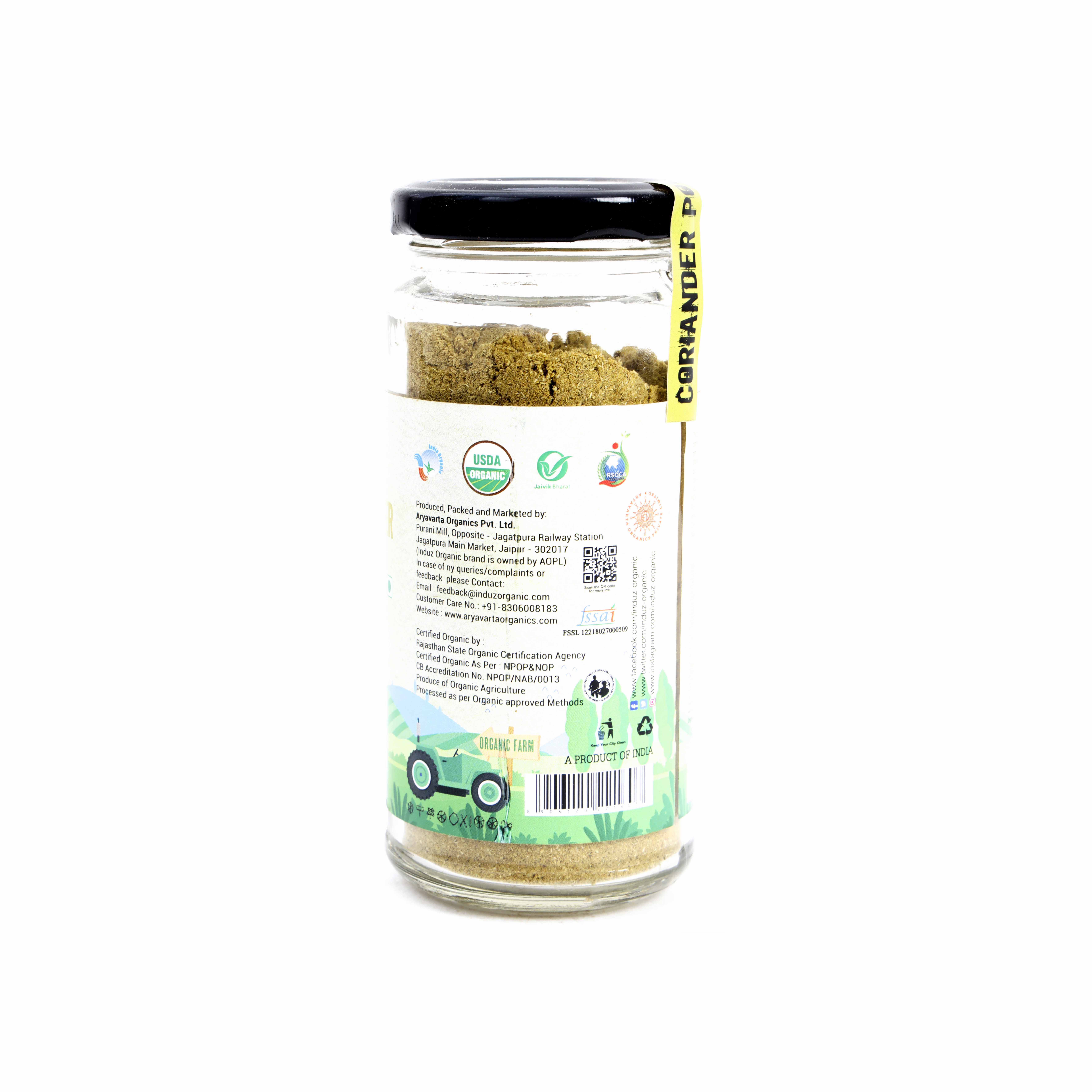 Induz Organic Coriander Powder - 100 GMS is Certified Organic spice obtained from Organic Coriander cultivated in organic farmlands across India. This spice is absolutely pure as it has not gone through any type of chemical processing. So this Organic Coriander Powder adds the genuine taste & flavor in Indian cuisine.Benefits : Induz Organic Coriander Powder - 100 GMS is one of the most widely used spices in the world. Coriander is found in a lot of Indian cooking dishes like curry, vegetables, fish, chicken or mutton recipes; it adds one nice bright flavour. Used to make chutneys or homemade pickles.