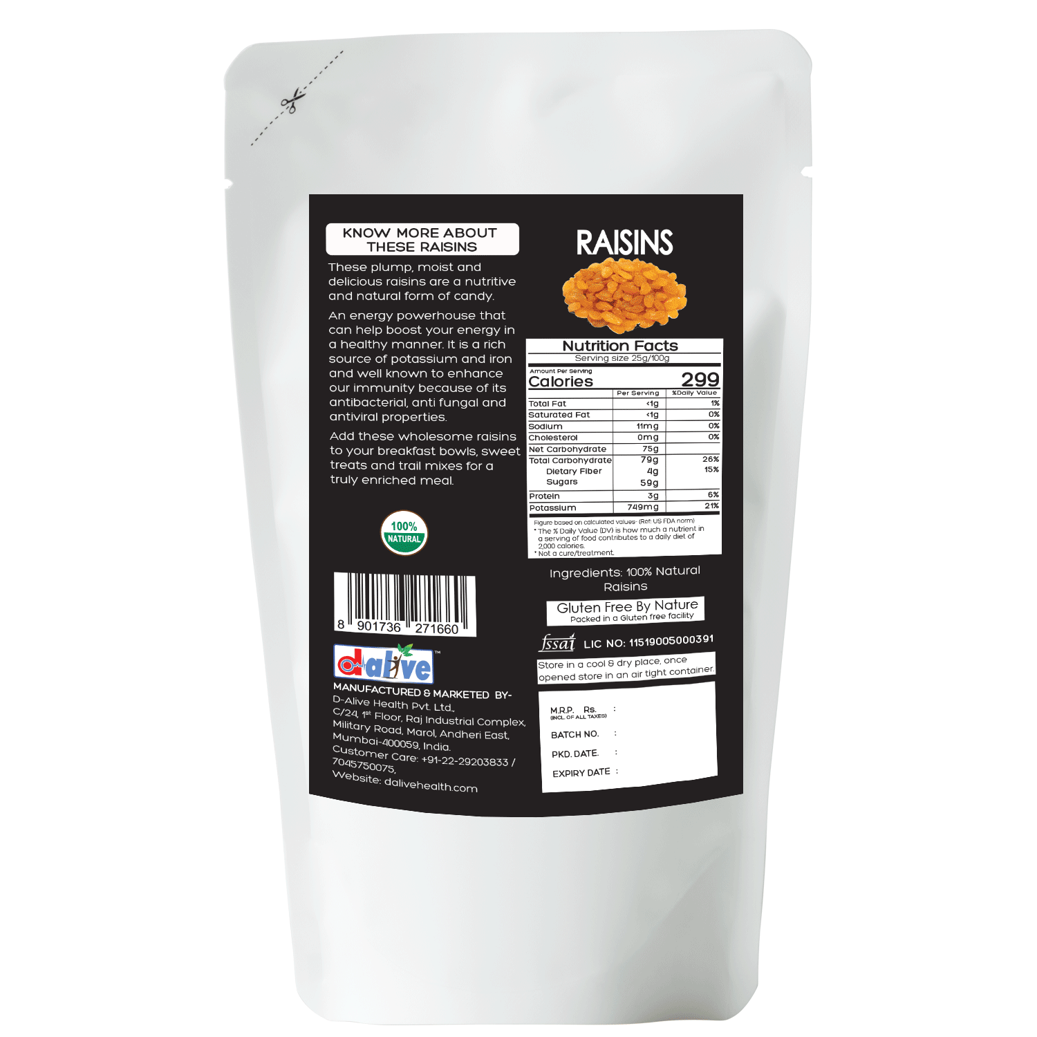 These plump, moist and delicious raisins are a nutritive and natural form of candy. An energy powerhouse that can help boost your energy in a healthy manner. It is a rich source of potassium and iron and well known to enhance our immunity because of its antibacterial, anti fungal and antiviral properties. Add these wholesome raisins to your breakfast bowls, sweet treats and trail mixes for a truly enriched meal.