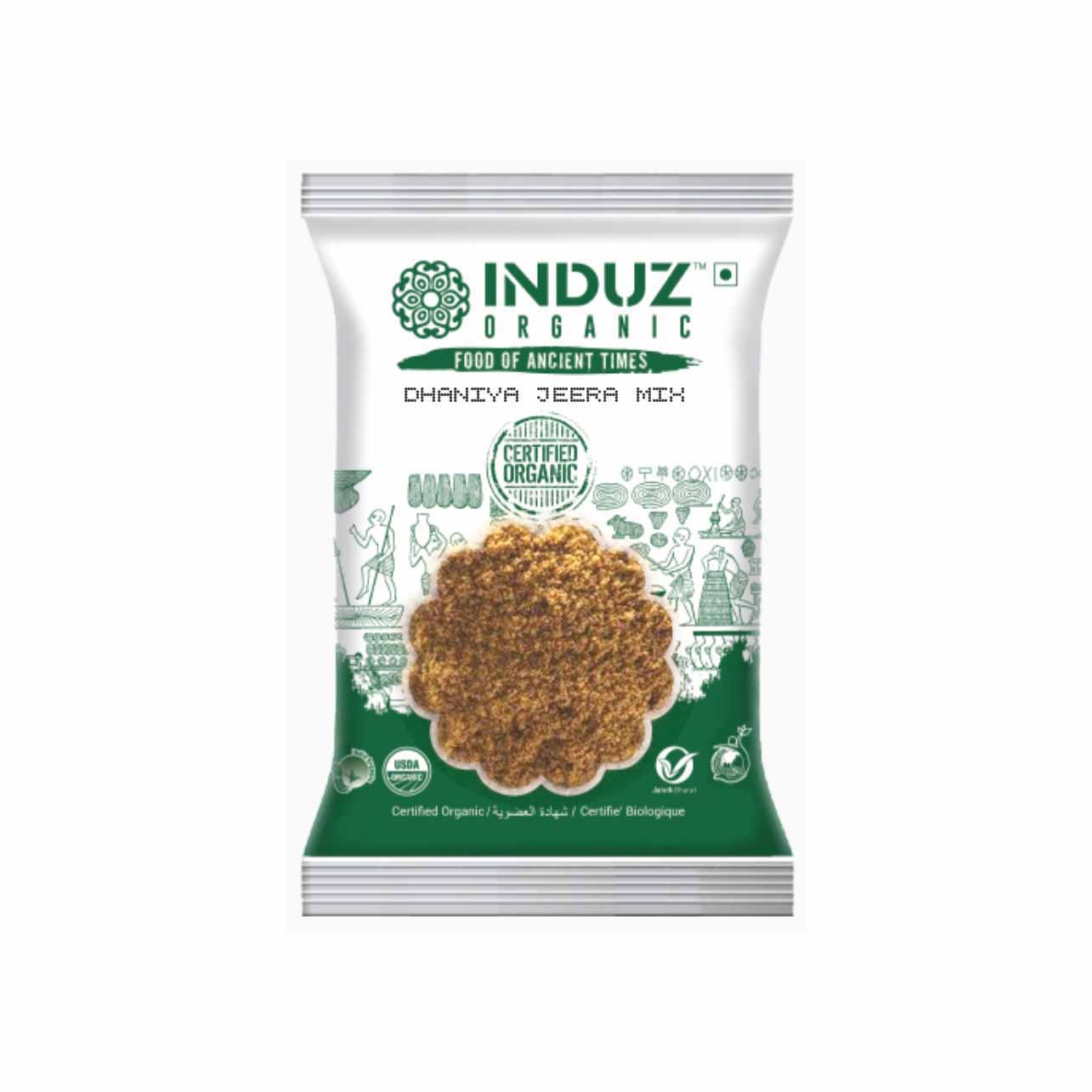 Induz Organic Dhaniya Jeera Mix - 100 GMS is Certified Organic spice obtained from Organic farmlands across India. This spice is absolutely pure as it has not gone through any type of chemical processing. So this Organic Dhaniya Jeera Mix adds the genuine taste & flavor in Indian cuisine.Benefits : Induz Organic Dhaniya Jeera Mix - 100 GMS is one extensively used spice in Indian cooking. This Organic Spice adds taste to food & has various medicinal properties.