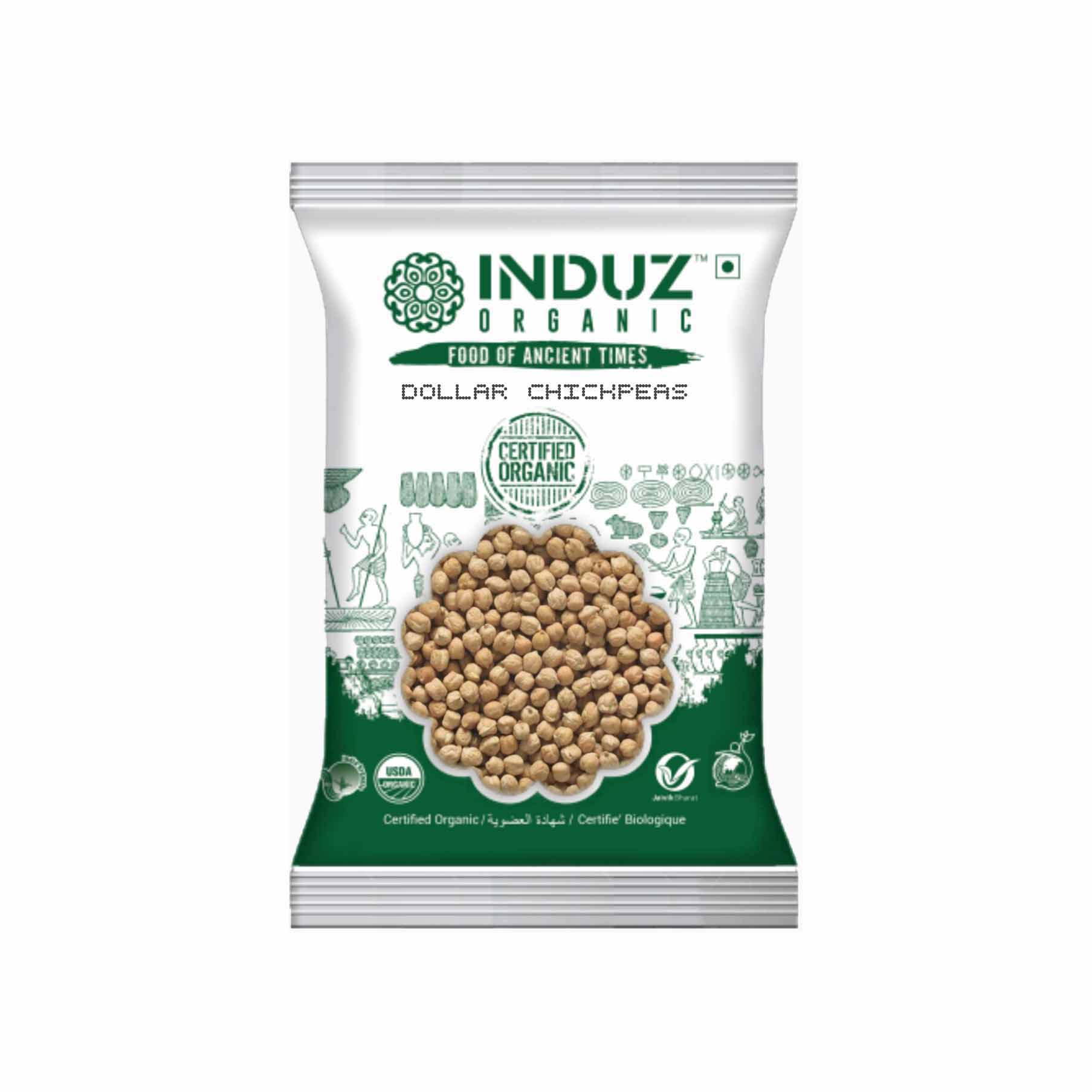 Induz Organic Dollar Chickpeas - 500 GMS is 100% Natural, Non GMO & Certified Organic Chickpeas. Induz Organic Dollar Chickpeas - 500 GMS has been cultivated without using any type of harmful chemicals or pesticides & herbicides. So all the benefits of this pulse are intact in the pack.Benefits : Induz Organic Dollar Chickpeas - 500 GMS provides healthy nutrition to the body as it is rich in dietary Fiber, polyunsaturated Fatty Acids, Vitamin A, Vitamin E, Vitamin C, Folate, Magnesium, Potassium, and Iron. Induz Organic Dollar Chickpeas - 500 GMS helps to maintain healthy glucose in the body & keeps obesity in check.