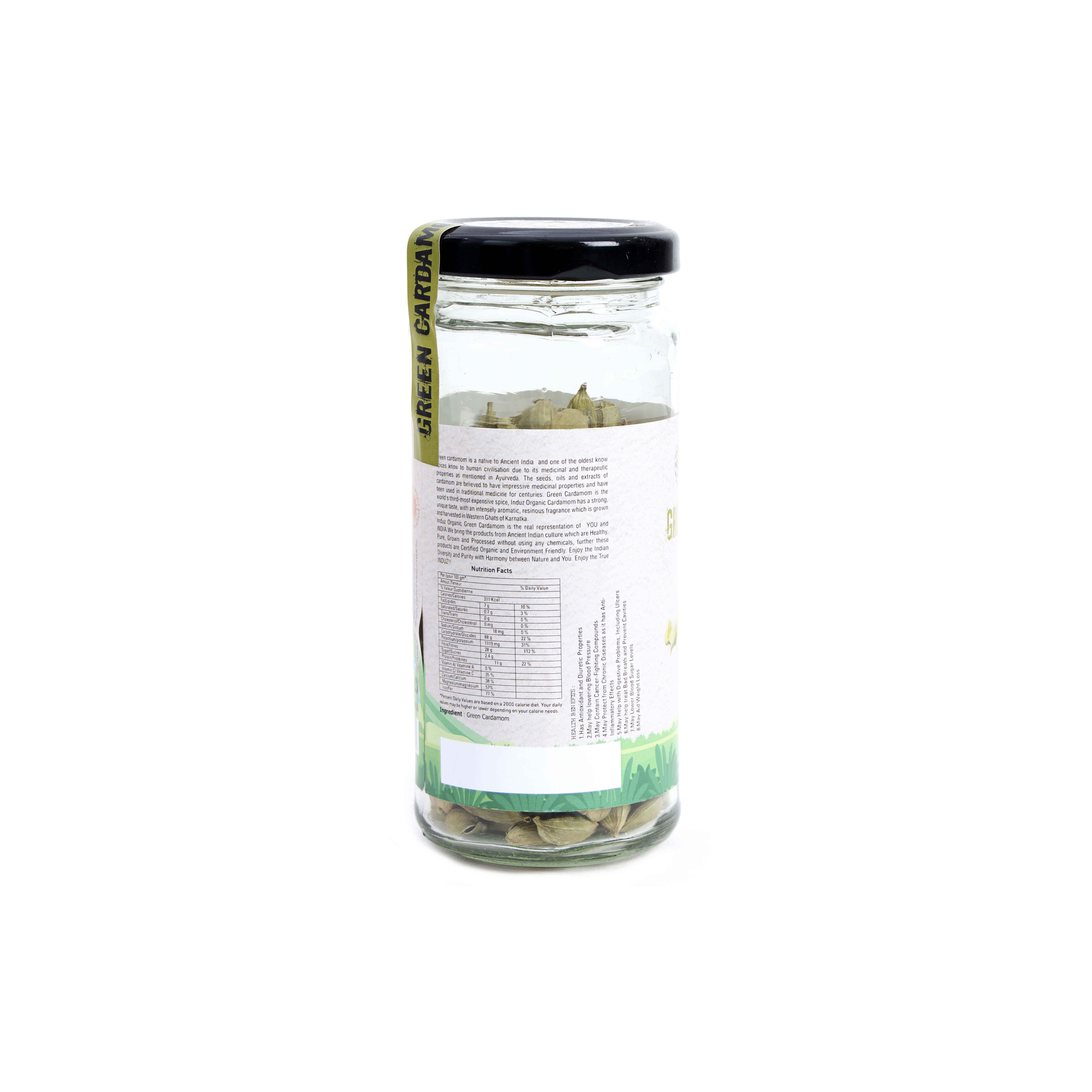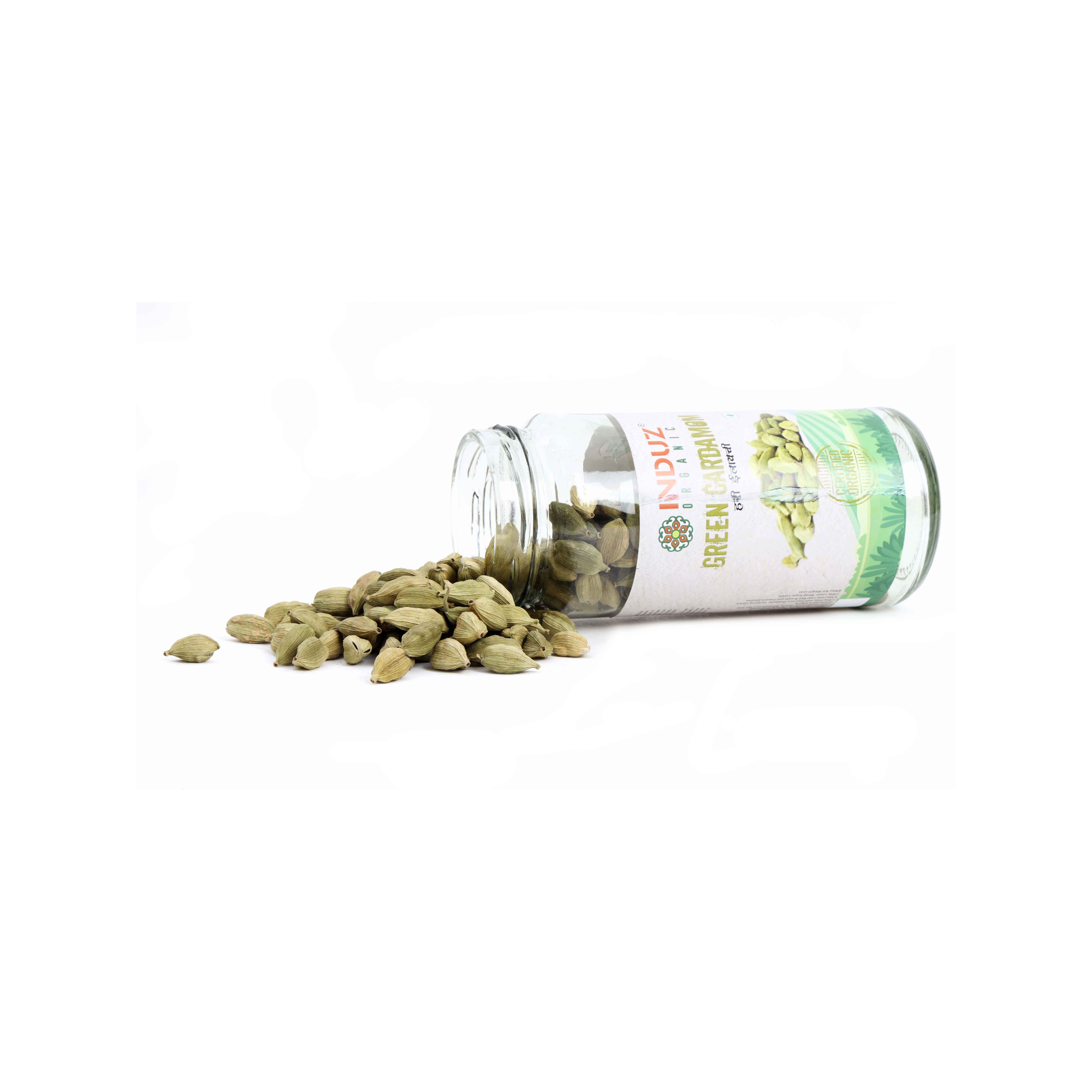Induz Organic Green Cardamom - 75 GMS is Certified Organic spice obtained from Organic farmlands across India. This spice is absolutely pure as it has not gone through any type of chemical processing. So this Induz Organic Green Cardamom adds the genuine taste & flavor in Indian cuisine.Benefits : Induz Organic Green Cardamom - 75 GMS is one charming spice to add amazing aroma to Indian dishes. It has wide uses like making ice-cream; cardamom powder is added with sugar to add flavour in drinks and baked foods; is mixed with tea or coffee for a fragrant and cheerful twist. Organic Green Cardamom has many health benefits too – like treating gastrointestinal disorders, supports dental health, treats nausea etc.