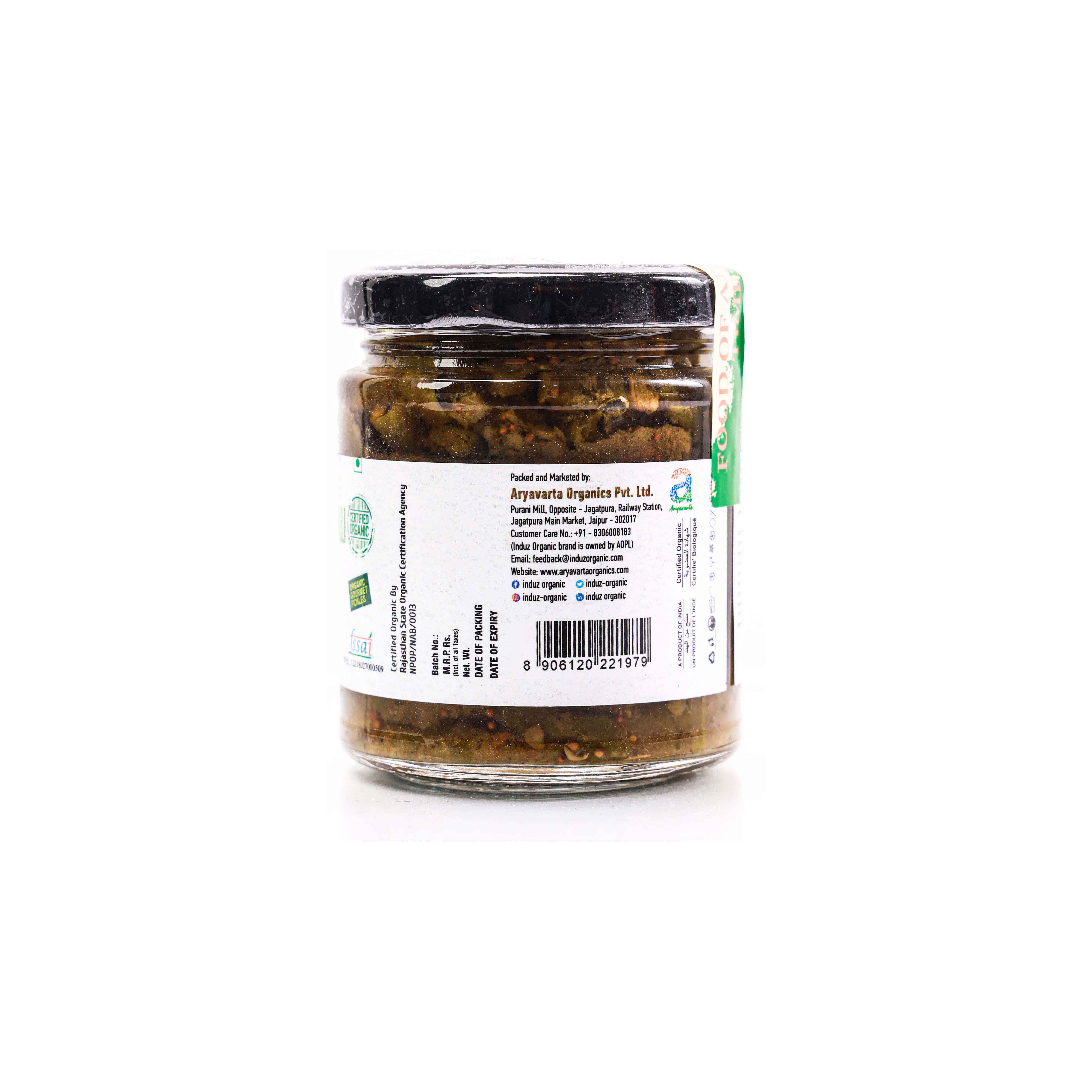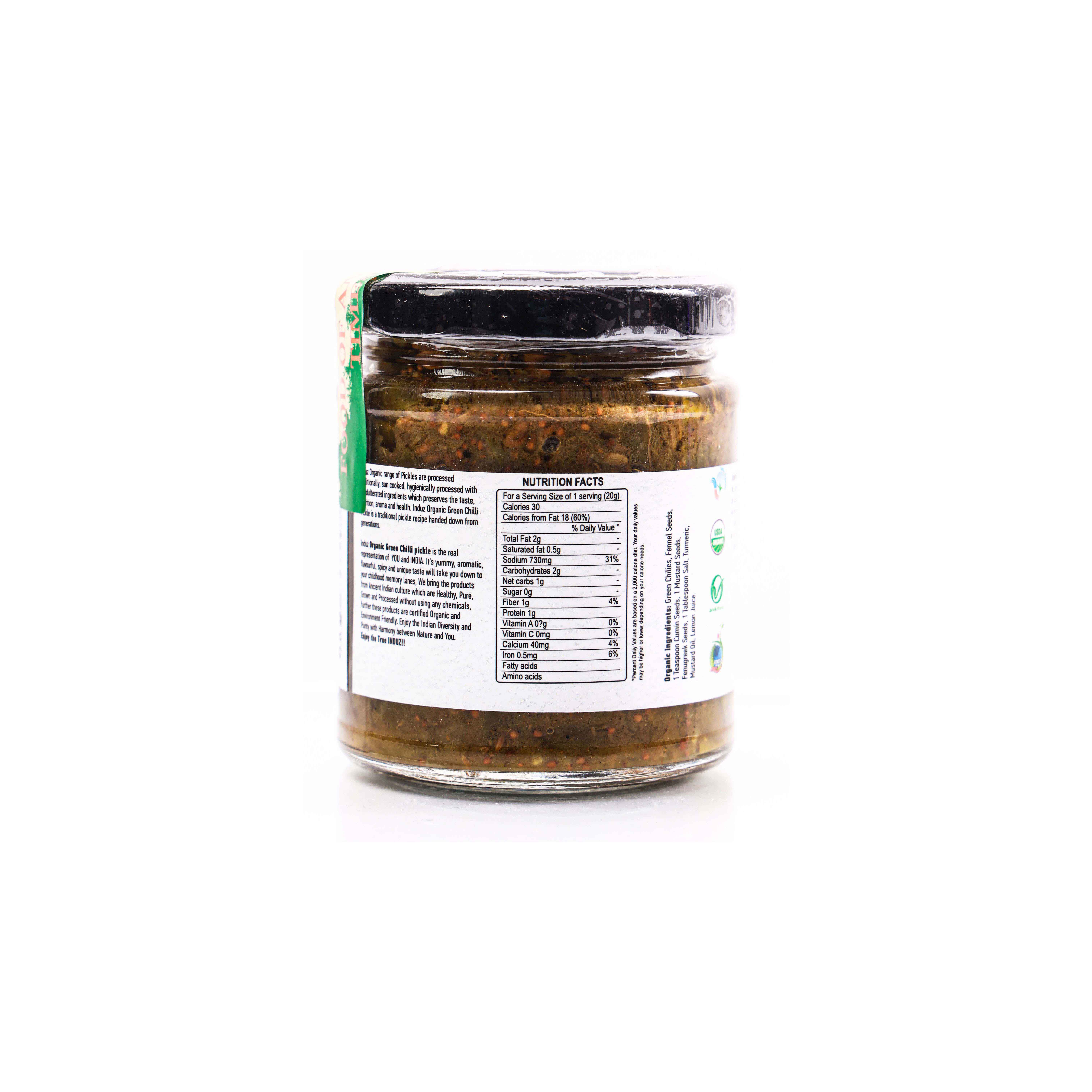 Induz Organic Green Chilli Pickle Salty - 200 GM is prepared from best quality Natural & Fresh Green Chilli. This Natural Pickle does not contain any artificial color or flavor to make it tasty. Only Natural & Fresh Spices are used to prepare Induz Organic Green Chilli Pickle Salty - 200 GMS. So all the natural nutrients are intact in the pickle.Benefits : Induz Organic Green Chilli Pickle Salty - 200 GMS retains the healthy nutrients of Green Chilli for absence of any type of artificial color or flavor or unhealthy chemicals. This Natural Pickle contains some Probiotics or healthy bacteria which can help to fight various diseases. Induz Organic Green Chilli Pickle Salty - 200 GMS contain various antioxidants, which prevents from various ill effects of body.
