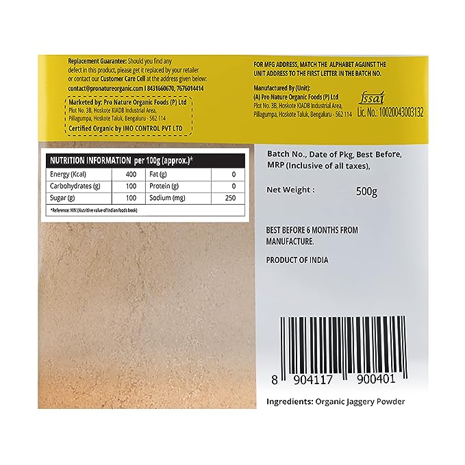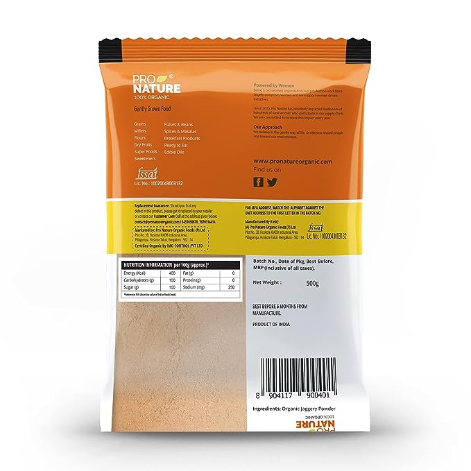 Pro Nature 100% Certified Organic Jaggery Powder is free from any chemicals and is a great replacement for sugar. It is known to purify blood, prevent infections, help with asthma, good for diabetes, treating cold and cough are few amongst it’s several benefits.