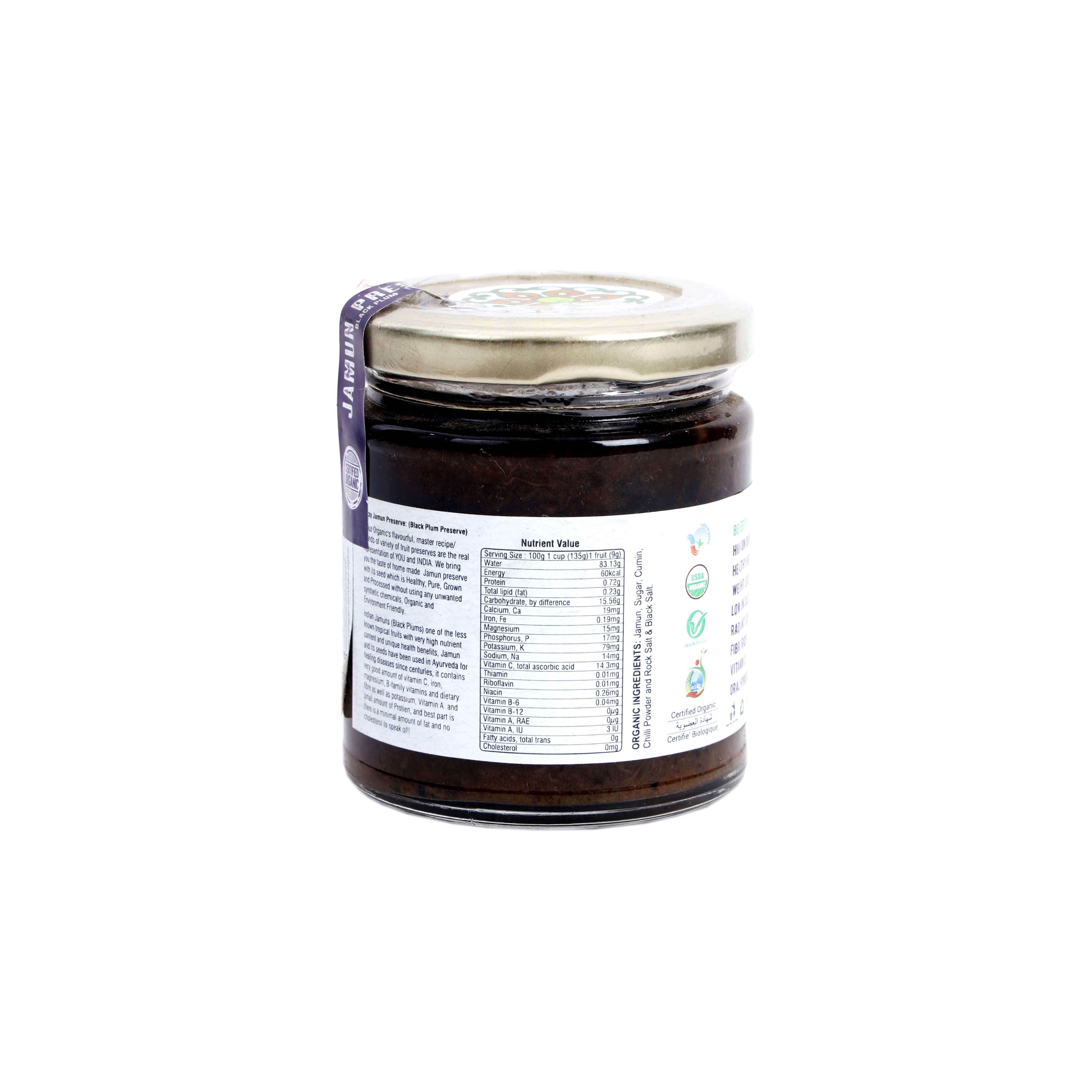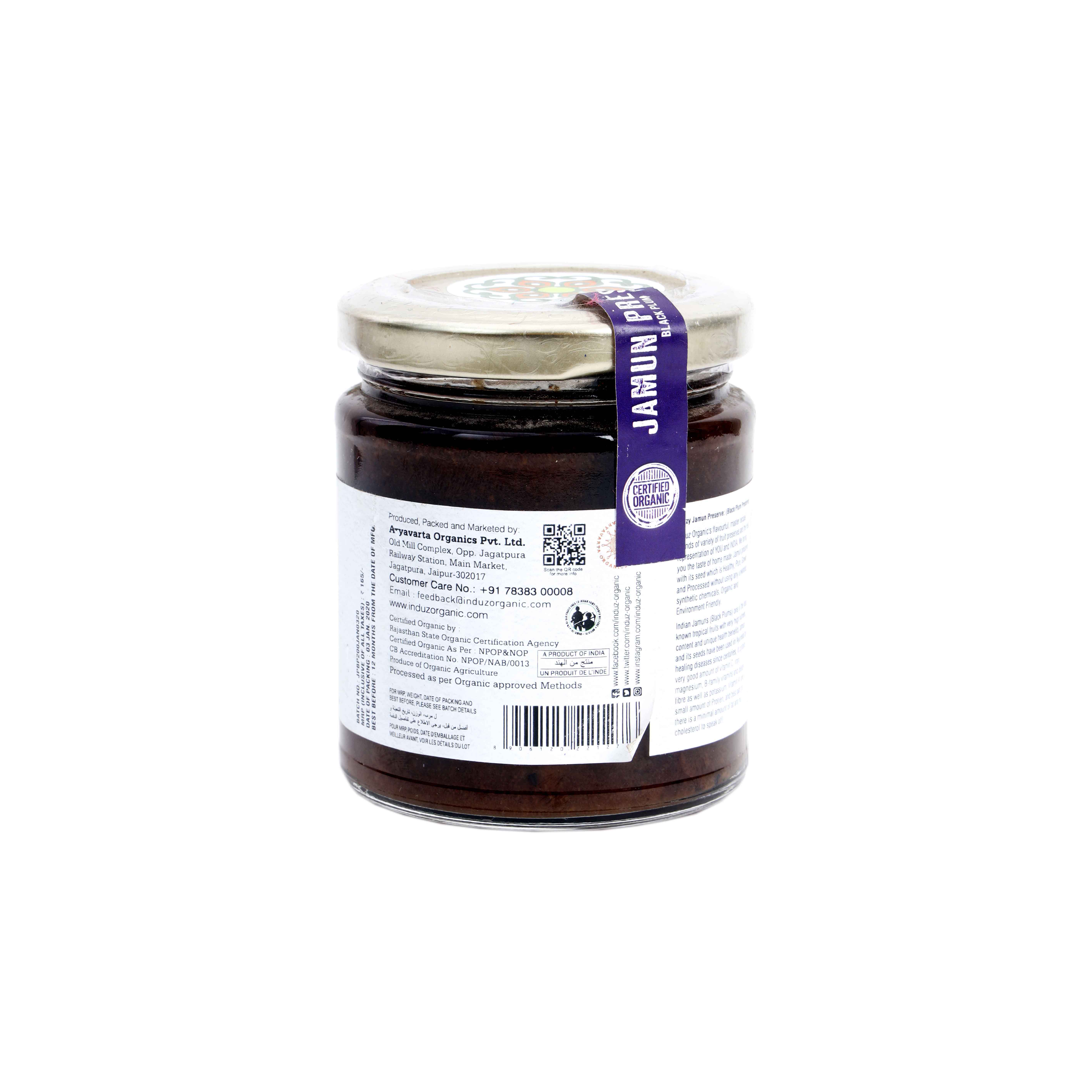 Induz Organic Jamun Preserve - 200 GMS is 100% Natural, Non GMO & Certified Organic citrus fruits and their peels, lending a zesty freshness to it.The Jamun is used cultivated without using any type of harmful chemicals or pesticides & herbicides. Induz Organic Jamun Preseve does not contain any added flavor or colors; so the Jamun benefits are locked inside. Benefits : Induz Organic Jamun Preseve - 200 Gm Packed With Nutrients and Antioxidants,Aid Digestion,Improve Heart Health,Protect Your Skin,Prevent Certain Types of Cancer,Reduce Allergy Symptoms,Widely Available and Easy to Add to Your Diet.