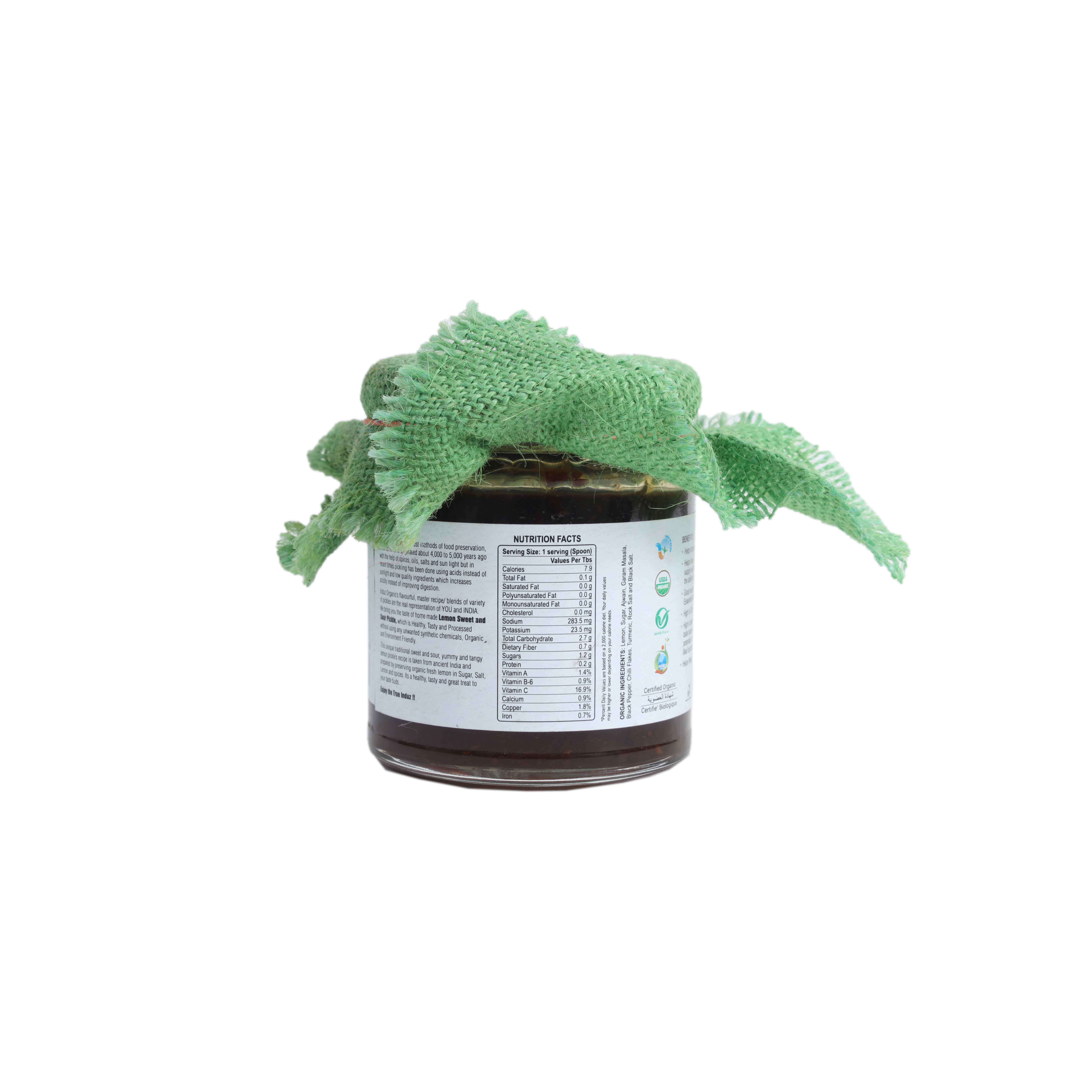 Induz Organic Lemon Pickle - 200 GM is prepared from best quality Natural & Fresh Lemons. This Natural Pickle does not contain any artificial color or flavor to make it tasty. Only Natural & Fresh Spices are used to prepare Induz Organic Lemon Pickle - 200 GMS. So all the natural nutrients are intact in the pickle.Benefits : Induz Organic Lemon Pickle - 200 GMS retains the healthy nutrients of Lemon for absence of any type of artificial color or flavor or unhealthy chemicals. This Natural Pickle contains some Probiotics or healthy bacteria which can help to fight various diseases. Induz Organic Lemon - 200 GMS contain various antioxidants, which prevents from various ill effects of body.