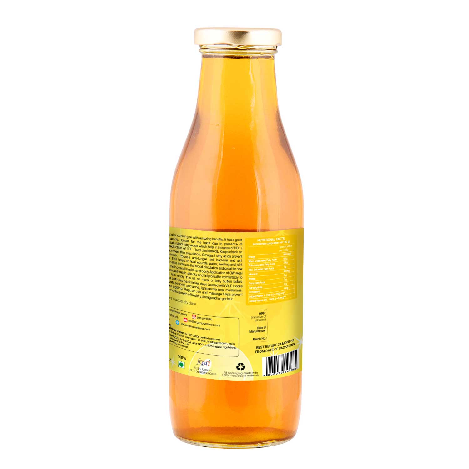 Organic wellness mustard oil is a popular cooking oil with amazing benefits. It is rich in omega acids. It is great for the heart due to presence of monosaturated, poly-saturated, fatty acids which help increase of hdl (good cholesterol) and reduces ldl (bad cholesterol). It keeps a check on blood fat levels and improves the circulation. It possess antifungal, antibacterial and anti-inflammatory properties. This helps to heal wounds, pains, swelling and joint pains. As a massage oil, it helps to increase blood circulation and great for new born babies. It also cures dry and chapped lips. Apply this oil in the naval/belly button at night, before sleeping to get a healthier skin. Massaging scalp with this oil helps to reduce hair fall and promotes growth of stronger hair.