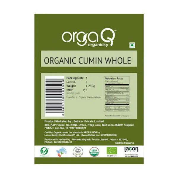Orgaq Organicky whole cumin seeds available in packet-250 Gram .