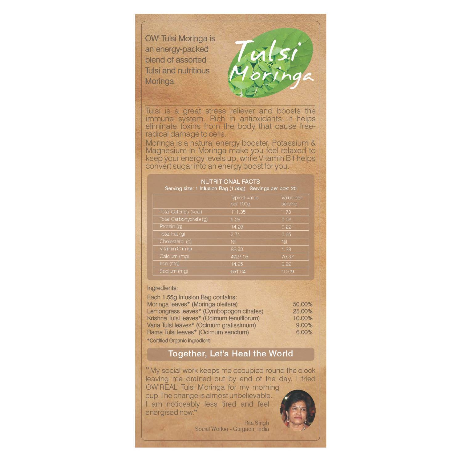 Organic Wellness Tulsi Moringa is made with the utmost care, using the following premium organic ingredients: