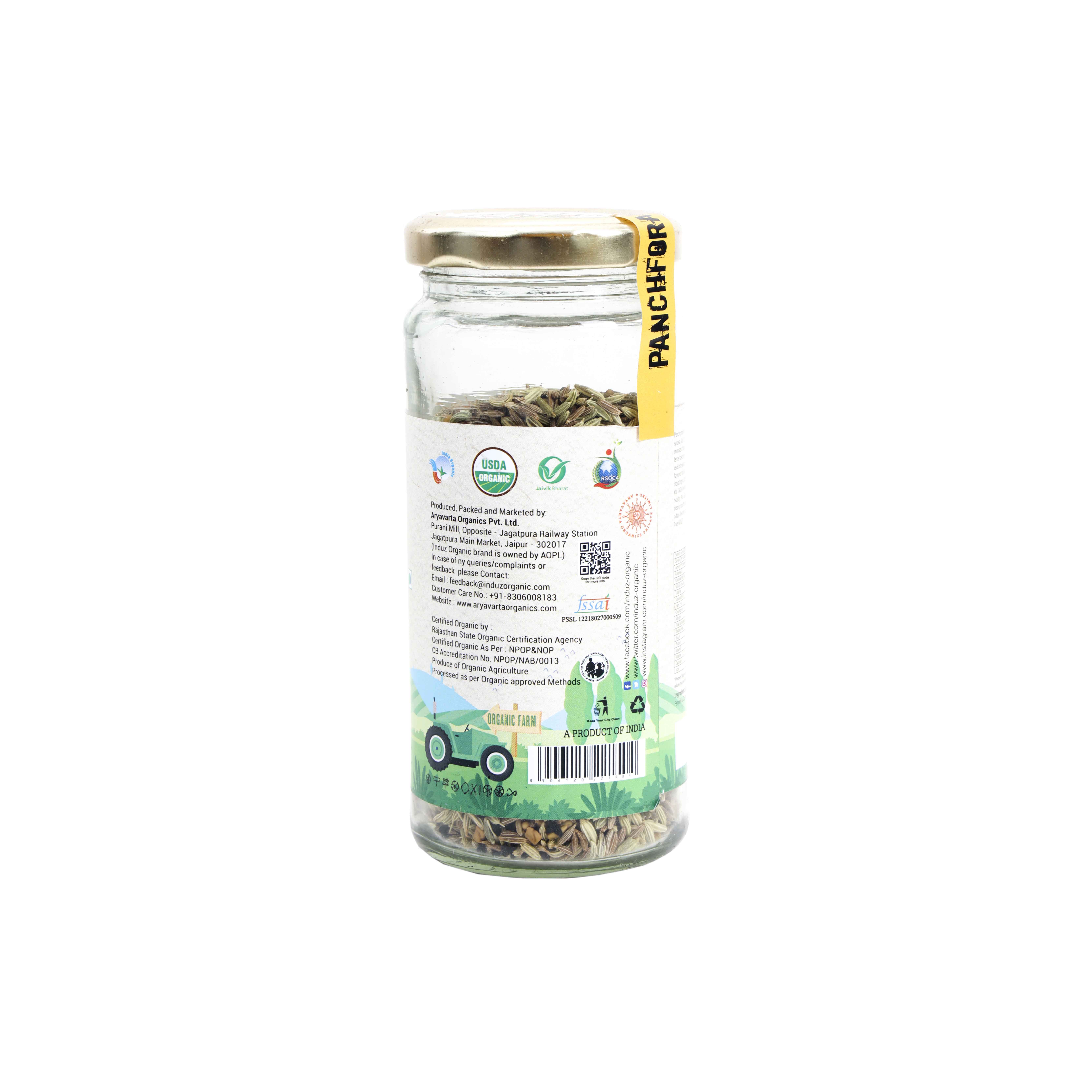 Induz Organic Panchforan - 100 GMS is a mixture of 5 spices – Fenugreek, Cumin, Nigella, Fennel & Mustard seeds. Each & every spice is Certified Organic & has been obtained from Organic farmlands across India. This spice is absolutely pure as it has not gone through any type of chemical processing. So this Organic Panchforan adds the genuine taste & flavor in Indian cuisine.Benefits : Induz Organic Panchforan - 100 GMS every spice of this Organic Panchforan has individual benefits & at the same time it makes the food delicious. Fenugreek helps to keep the blood pressure under control, Cumin maintains the digestive health, Nigella seeds are famous for their anti-inflammatory properties & Mustard protects the gastrointestinal health.