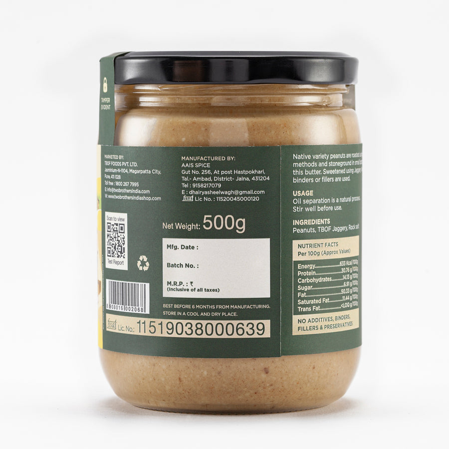 Description: Creamy butter made with roasted peanuts and TBOF jaggery