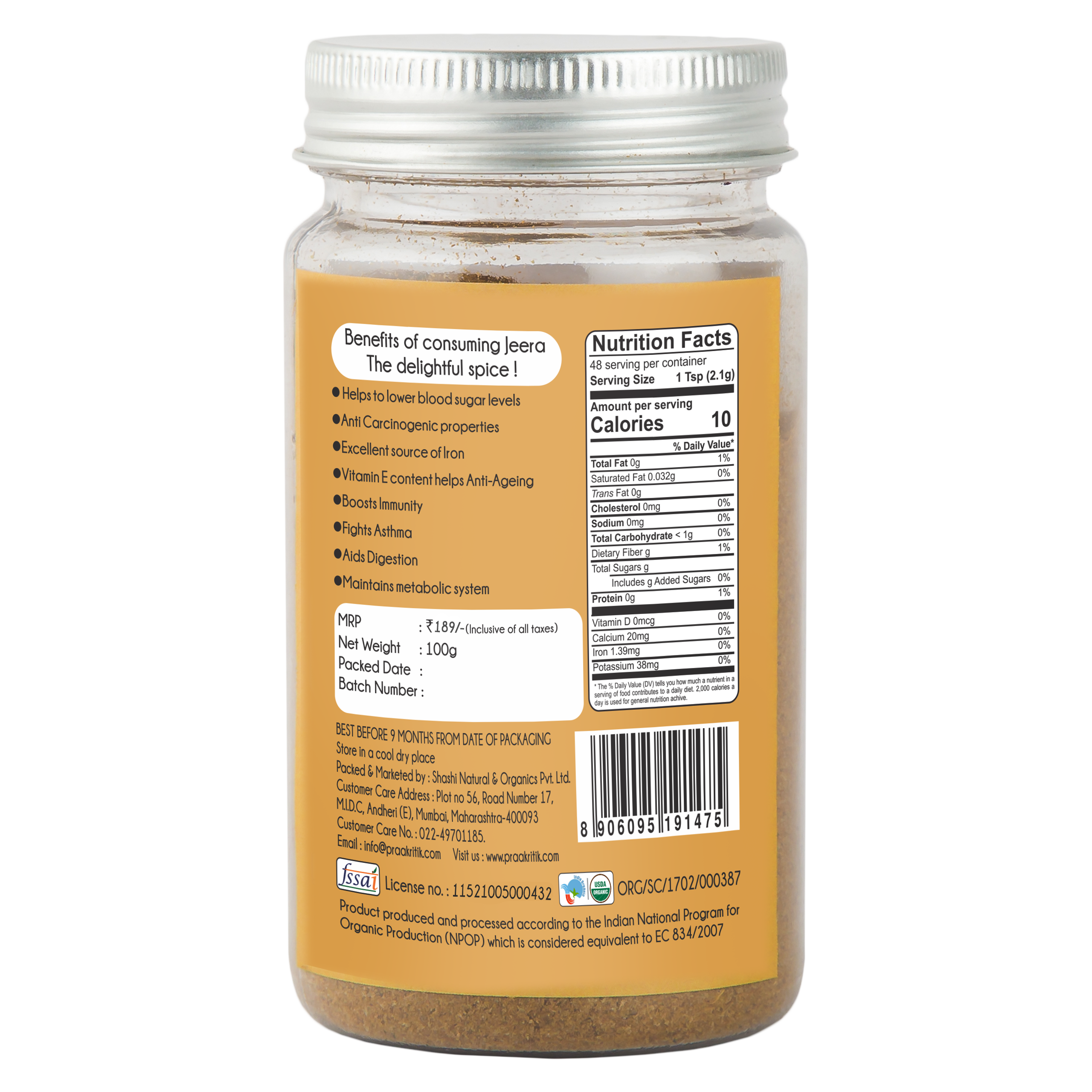 Our fragrant Organic Jeera Powder is smoky, nutty and warm in flavour. This powder make your food finger-licking good and super healthy. According to Ayurveda, Cumin is rich in vitamin and minerals and helps in balancing all Doshas. Consuming Organic Jeera helps to lower blood sugar levels and has Anti-Carcinogenic Properties. Organic jeera is an excellent Source of Iron, Vitamin E content. It helps Anti-Ageing, Boosts Immunity, Fights Asthma , Aids Digestion and maintains Metabolic system.