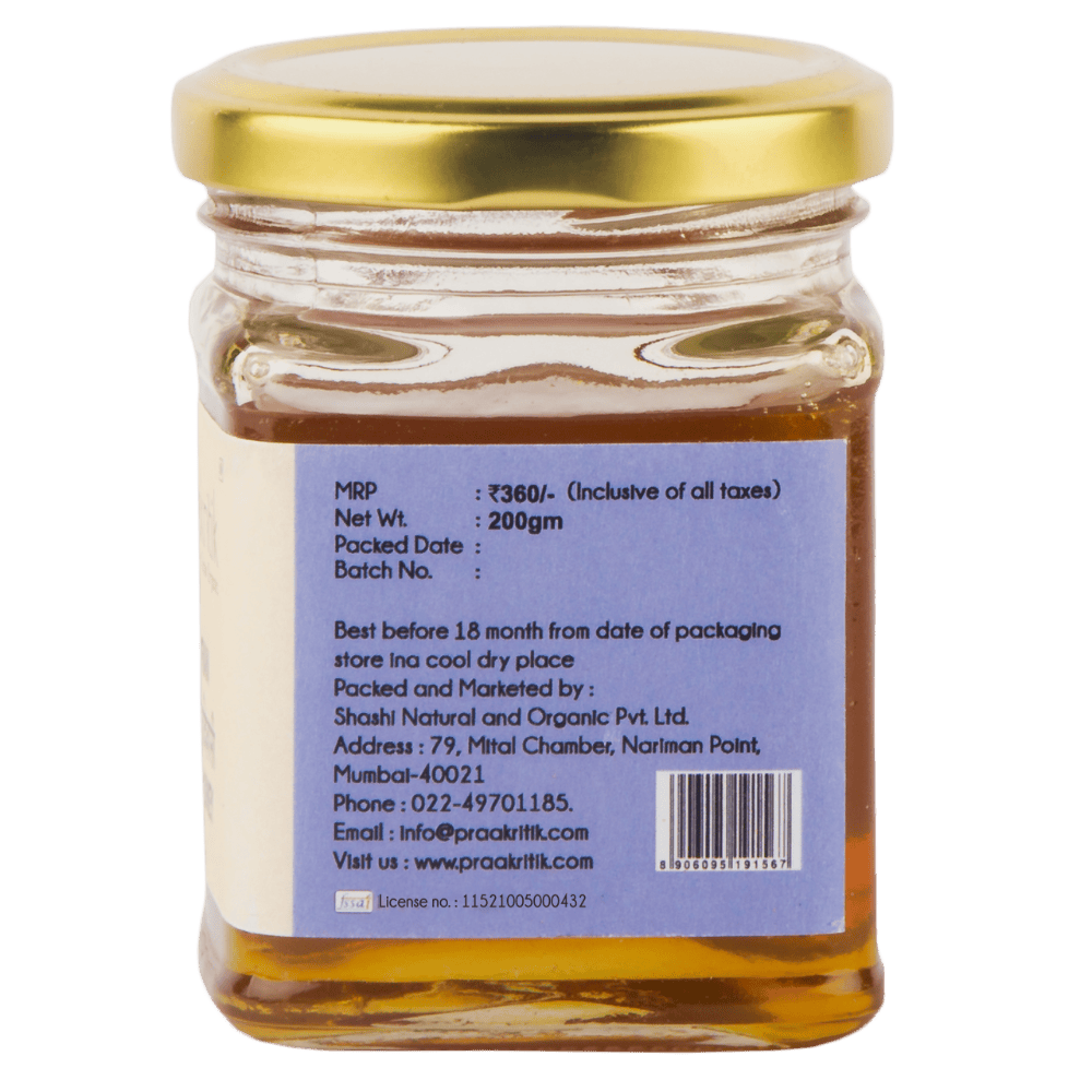 A labour of love, this raw Natural Adivasi Honey is collected and sourced from indegenious tribes in Jharkhand and Uttarakhand. Each bottle of this honey is unique in color and taste as it is based on which flower is in bloom when the honey is collected. These golden drops of nature’s nectar are chemical-free, unheated, unpasteurized, and unprocessed. Handcrafted and nutrient-packed, our Natural Raw Honey is rich in micronutrients, anti-viral, anti-fungal, anti-bacterial, anti-allergent, anti-anemic, antimicrobial, antiseptic and has anti inflammatory properties. It is floral in aroma and sweet and pleasant in flavour. A natural replacement for sugar, this honey helps boost immunity and is great for your skin and overall wellbeing.
