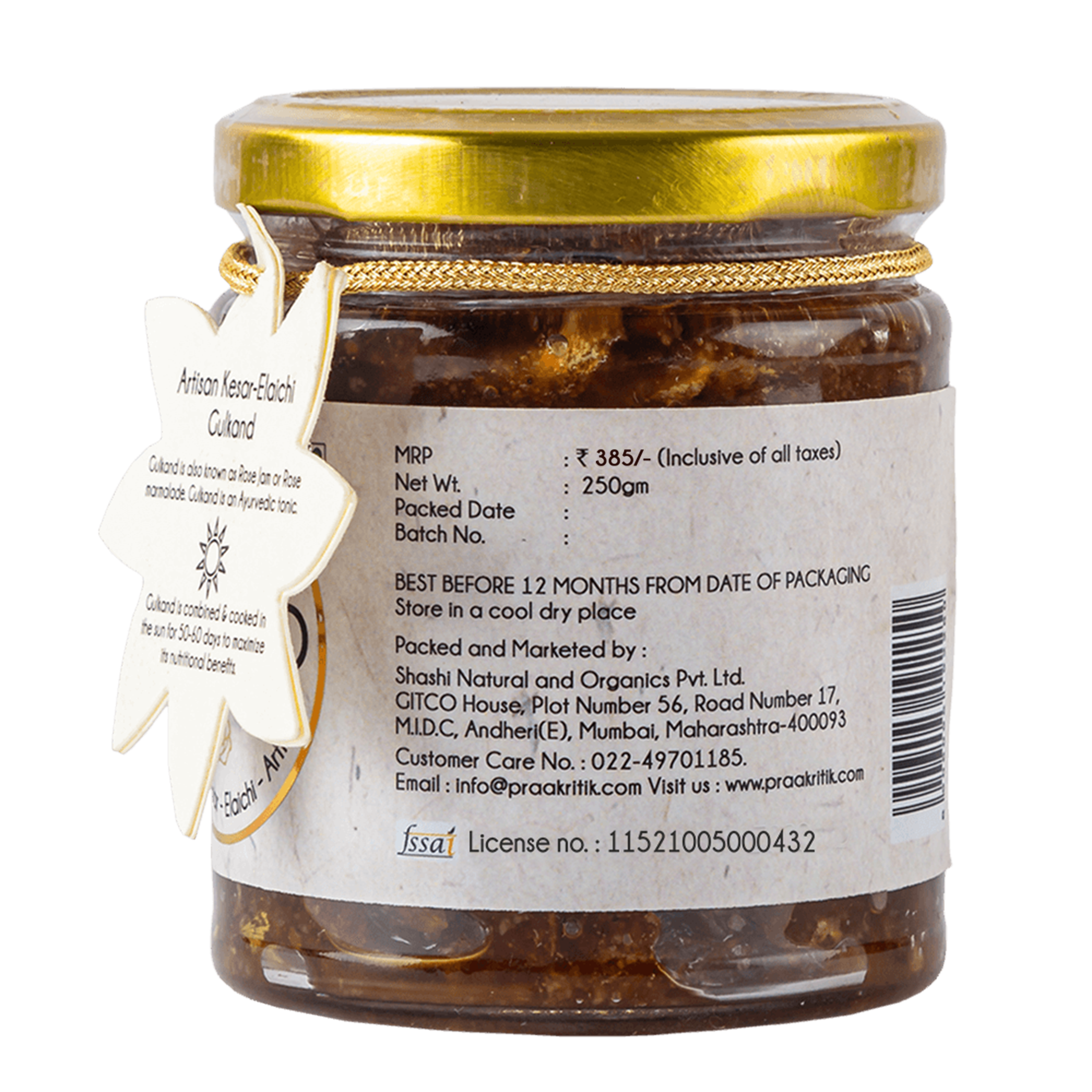 Our Indian Damask Pink Rose Comes from the Foothills of Pushkar, Rajasthan. We use autumn bloomed rose petals which bloom twice a year. This Gulkand is made from fresh rose petals and mishri (unrefined form of sugar) which has its own medicinal values. All the ingredients are combined and cooked in the sun taking 50-60 days to make this Artisanal Gulkand with maximum nutritional benefits.