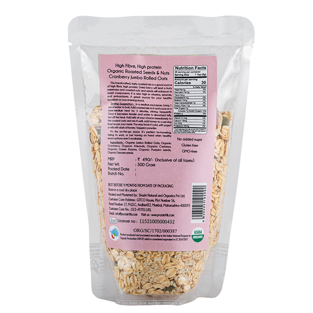 This handcrafted , tasty roasted mix is a good source of fiber,high protein. Dried berry will lend a fruity sweetness and roasted nuts and seeds will enhance its sweet components. It is also high in vitamins, minerals, and antioxidants. It's a great source for your healthy breakfast or your evening snack.