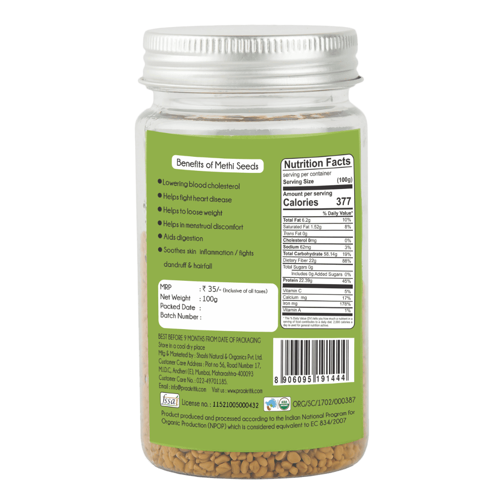 Organic Methi helps Lowering blood cholesterol ,fight heart disease, loose weight , menstrual discomfort, Aids digestion and is used widely as a cosmetic – soothing skin inflammation / fighting dandruff & hair fall