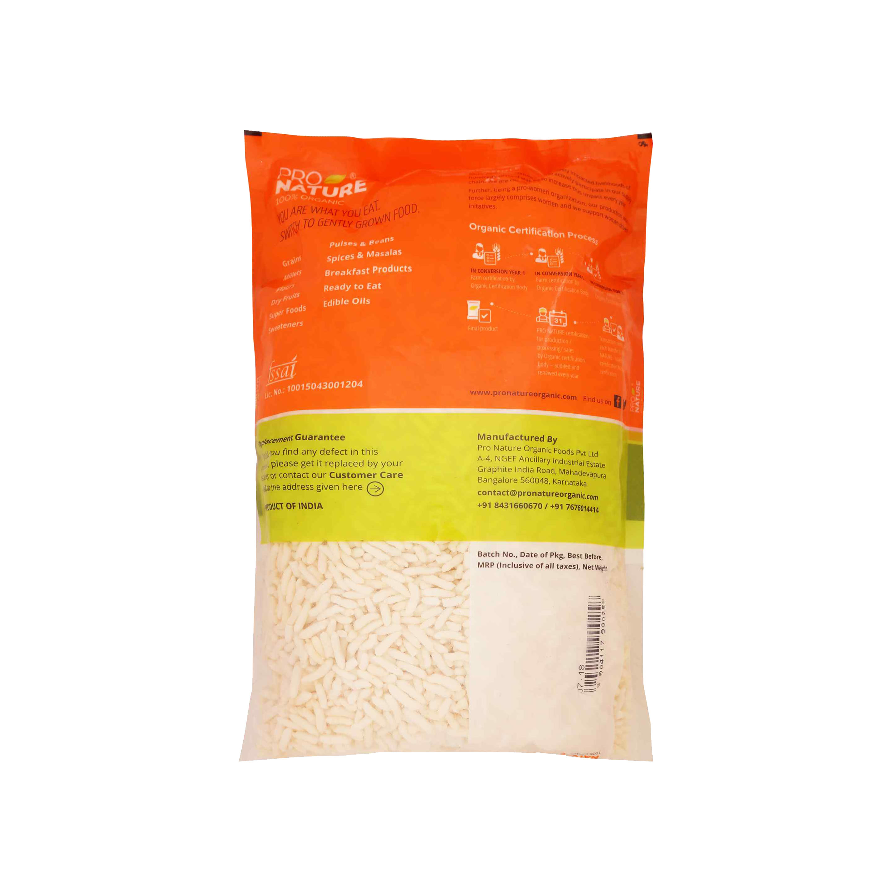 Pro Nature 100% Certified Organic Puffed rice is made from the finest 100% Certified Organic rice. No soda is used during the puffing process. Pro Nature Organic Puffed rice makes for a healthy snack due to the low calories and less fat per serving. It is ideal for promoting brain development, maintaining blood pressure, improving bone strength and giving a boost of energy due to high carbohydrate content. Puffed Rice is light and crispy. It can also be used to make ladoos and chikki by adding jaggery and other ingredients. Try our Puffed Rice, a healthy choice to satisfy cravings without sabotaging your diet that also gives a quick burst of energy.