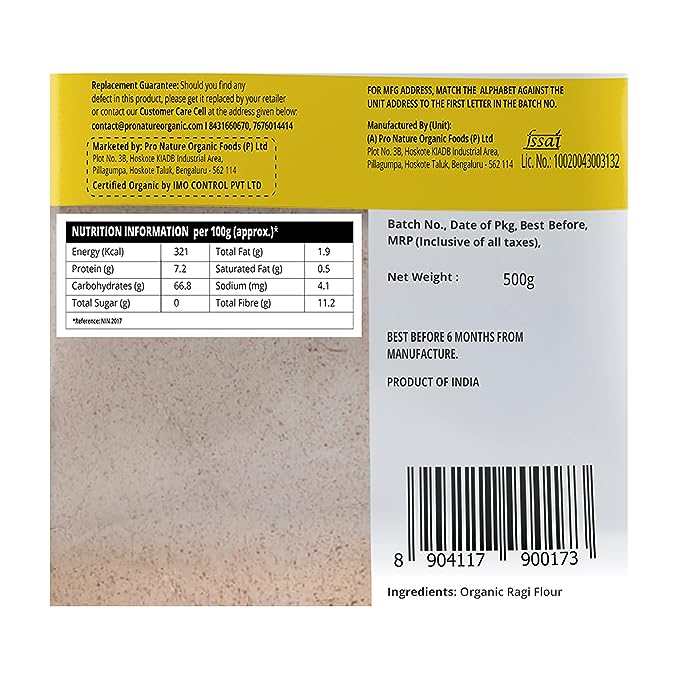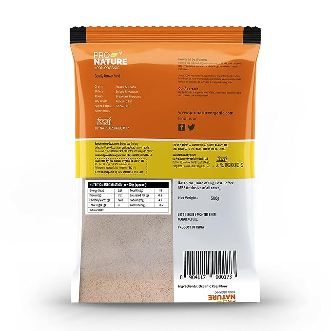 Pro Nature 100% Organic Finger Millet (Ragi) is sourced from certified organic farms bringing 100% Organic, that retain their goodness and natural taste. It is sourced from Certified Organic farms and grown without the use of any chemicals, pesticides or insecticides. Organic Ragi is high in Protein and also aids in lowering Type 2 diabetes along with helping in weight loss, increasing bone strength and many other health benefits. Pro Nature 100% Organic Ragi Millet is 100 percent Gluten Free hence making it available and consumable for all age groups.
